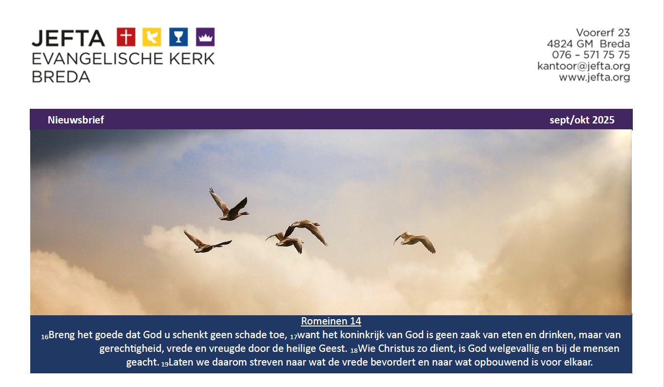 Hier vindt u de laatste nieuwsbrieven van Evangelische Kerk Jefta